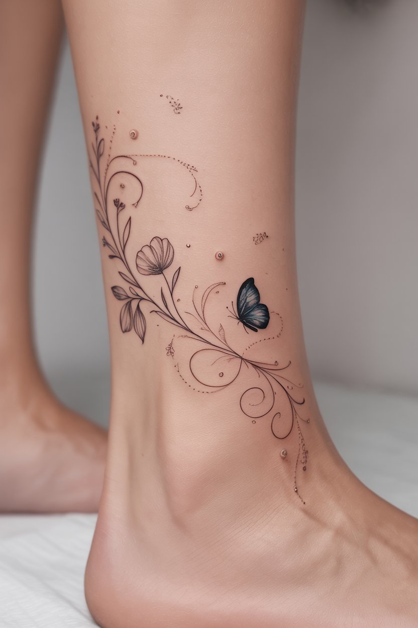Ethereal Elegance: The Art of Botanical and Butterfly Ankle Tattoos