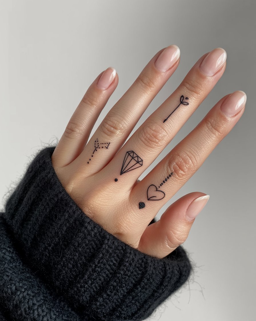 These carefully curated finger tattoos demonstrate how modern tattoo artistry has evolved to embrace subtlety and sophistication. From geometric diamonds to celestial dotwork, from minimalist hearts to botanical stems, each piece tells a story of precision, intention, and the beautiful art of saying more with less. The clean lines, perfect proportions, and thoughtful placement reveal why finger tattoos have become the preferred choice for those seeking elegant, meaningful body art.