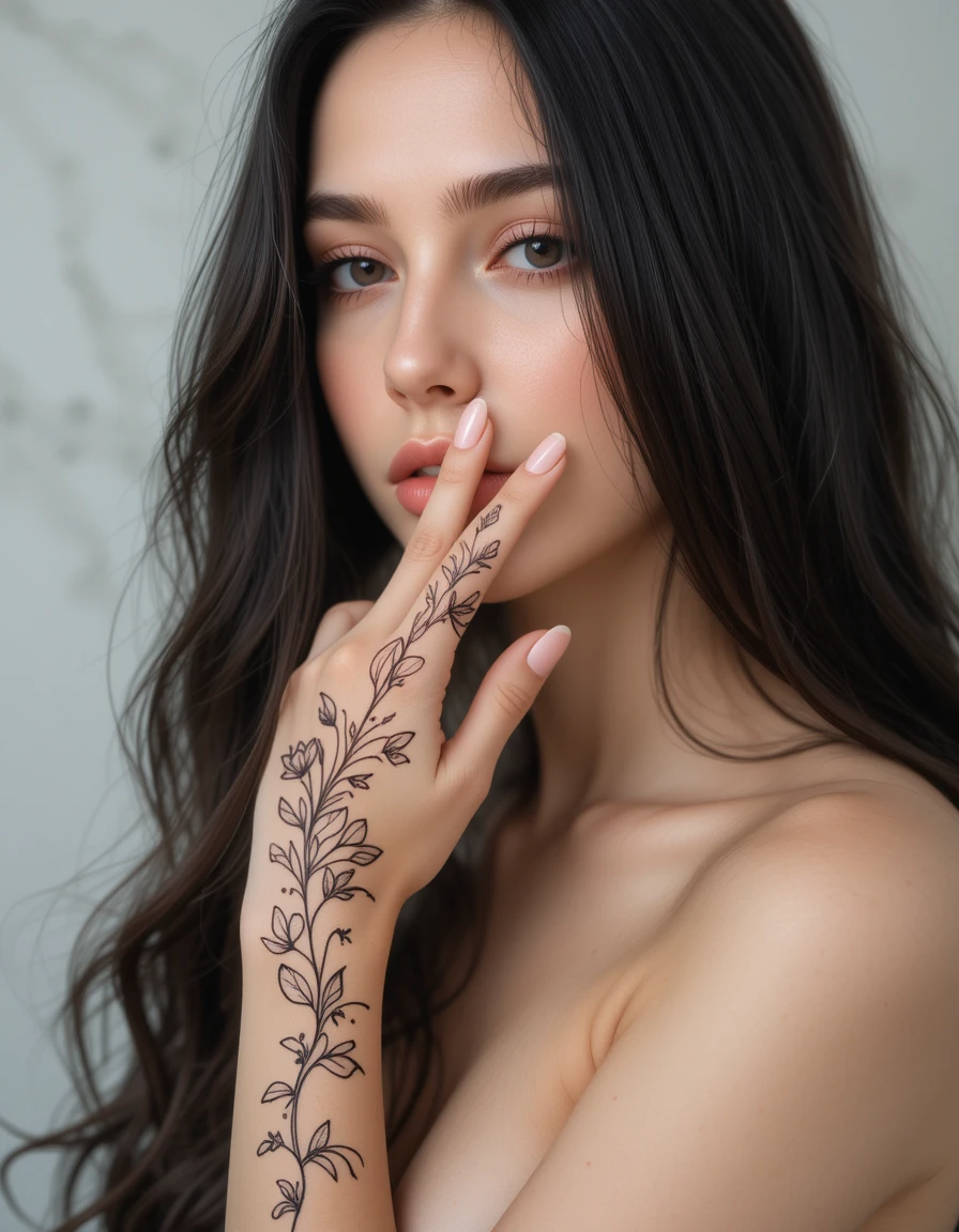 Minimalist Harmony: This approach pairs delicate, fine-line tattoos with subtle nail art – perhaps clear bases with tiny botanical elements that echo tattoo motifs. The emphasis is on refinement and understated elegance.